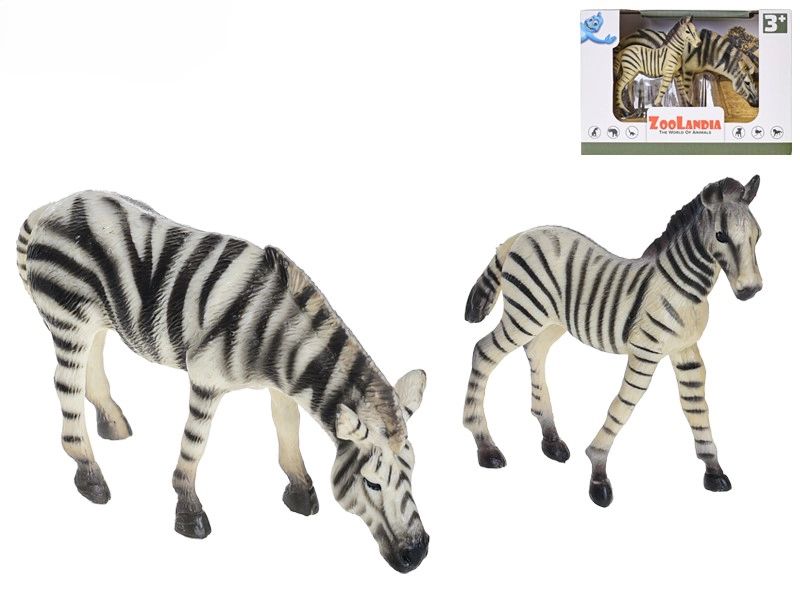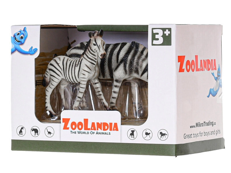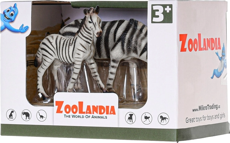 Ontdek de magie van de Afrikaanse savanne met een set van twee kunststof figuren: een zebra met jong van ZOOLANDIA. De gedetailleerde afwerking, het realistische uiterlijk en het duurzamere materiaal garanderen een lange levensduur, zelfs bij dagelijks spelen. Ideaal voor kinderen vanaf 3 jaar, om de fantasie te prikkelen, over dieren te leren en een eigen dierentuin te creëren.