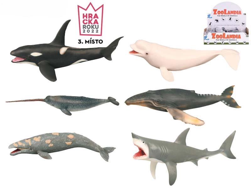 - 6 (orka, blauwe vinvis, narwal, beloega, grijze walvis, grote witte haai)
