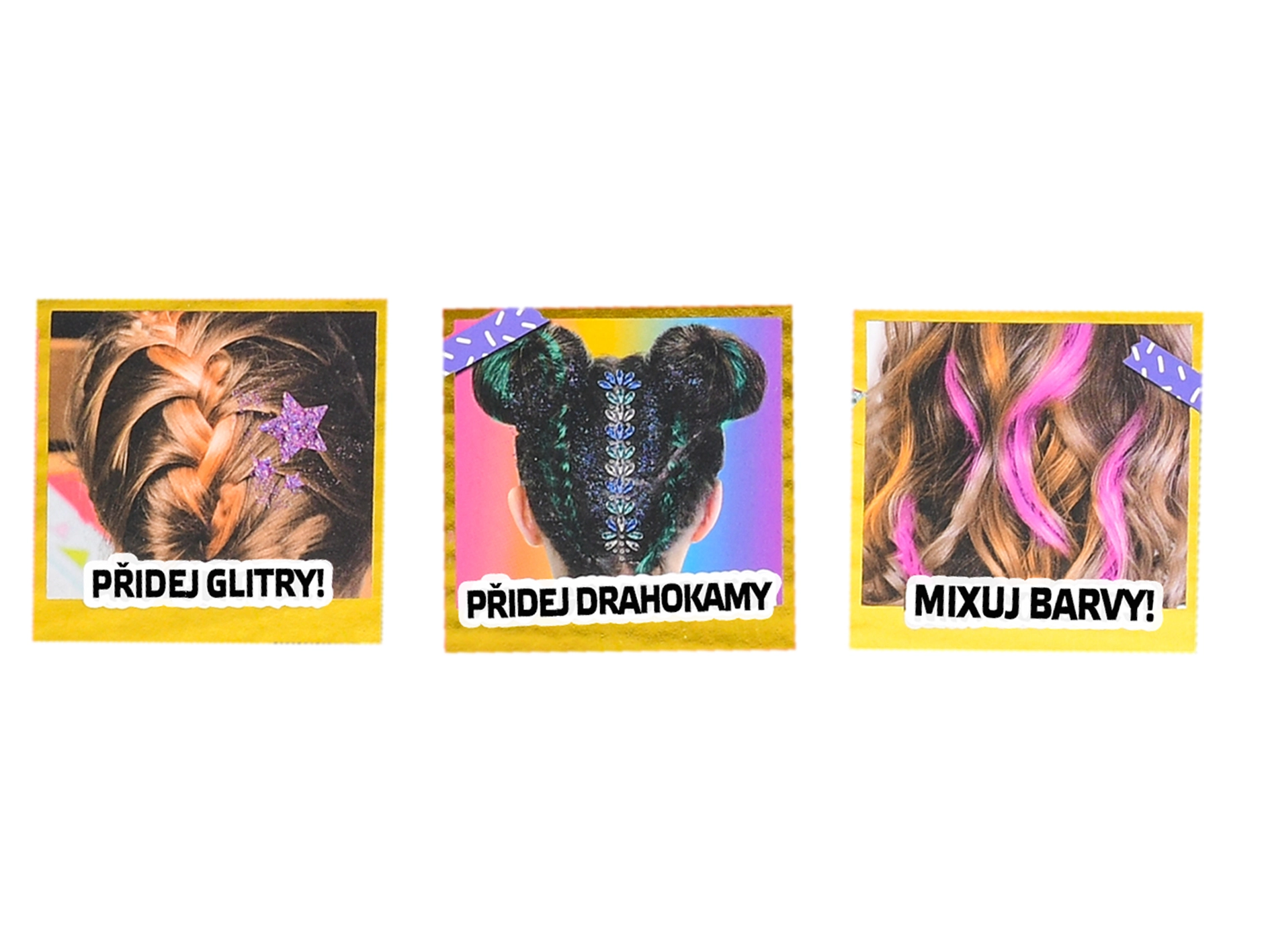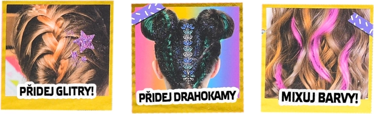 - Haarkrijtjes, steentjes, sjablonen, gel, glitter