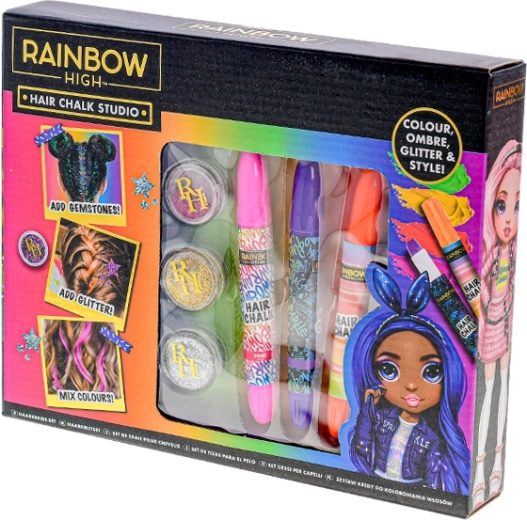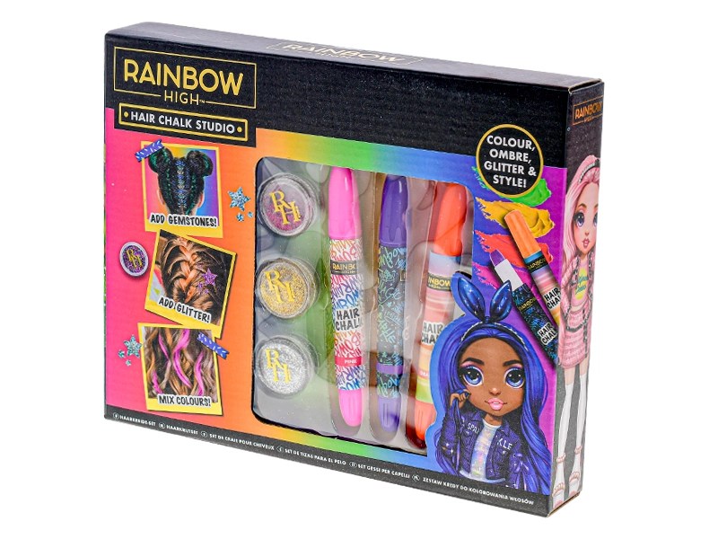 Ontdek de wereld van RAINBOW HIGH en creëer in een oogwenk een unieke look. De set is ontworpen voor veilig, tijdelijk haardecoreren en stimuleert creativiteit en verbeelding. Dankzij de eenvoudige applicatie kunnen zelfs beginners indrukwekkende kapsels maken.