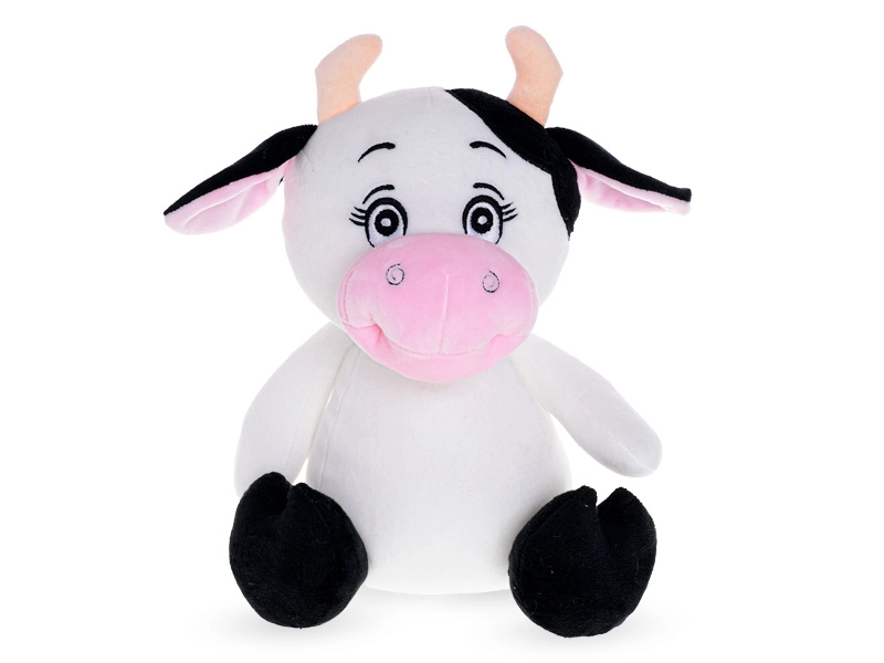 Deze pluchen koe verrukt met haar zachte aanraking, schattige uitstraling en kwalitatieve afwerking. Dankzij de geborduurde oogjes zonder plastic onderdelen is ze geschikt vanaf de geboorte en geeft ze kinderen een gevoel van veiligheid en comfort. Het zittende ontwerp zorgt voor stabiele plaatsing op het nachtkastje, een plank of in het bedje.