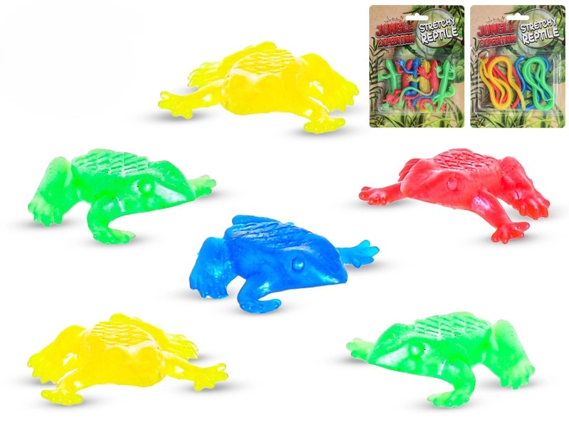 Ontdek het plezier met de collectie rekbare reptielen Jungle Expedition – slangen, kikkers en hagedissen van flexibel, veilig materiaal. Kinderen vanaf 3 jaar genieten van interactief spel waarbij ze de figuren kunnen uitrekken, buigen en hun eigen verhalen kunnen bedenken. De compacte verpakking maakt dragen en opbergen eenvoudig. Flexibel materiaal, realistische afwerking, gevarieerde formaten en duurzaamheid voor veelvuldig spelen maken deze set tot een geweldige aanvulling op de kinderlijke fantasiewereld.