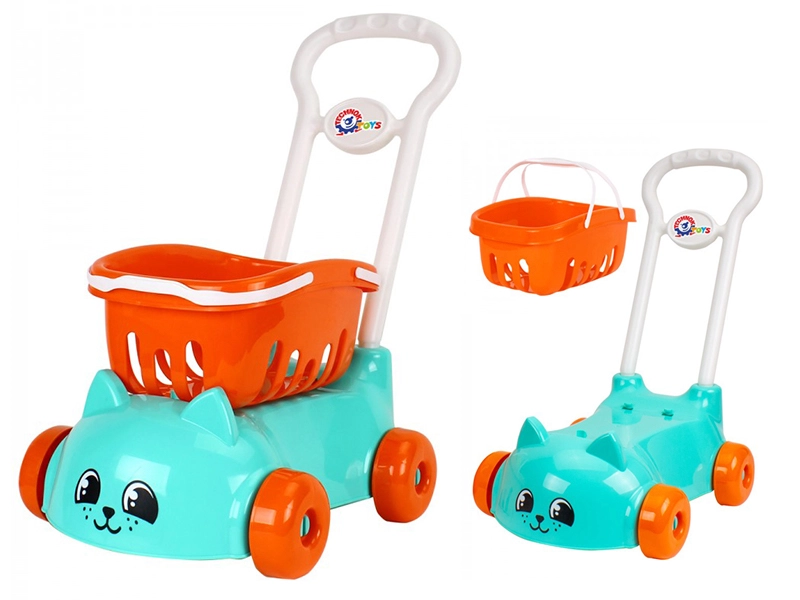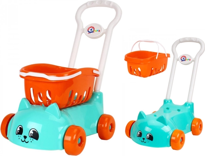 Op zoek naar een leuk speeltje voor kleine winkeliers? Dit kinderwinkelwagentje in een prachtige turquoise kleur met een schattig kattenmotief zal elk kind verrukken. Dankzij het afneembare mandje is het ideaal voor het vervoeren van speelgoed en boodschappen tijdens rollenspellen. Licht, gemakkelijk te besturen en geschikt voor kinderen vanaf 3 jaar.