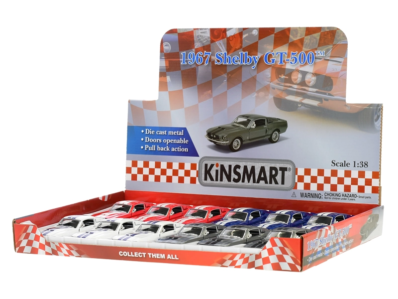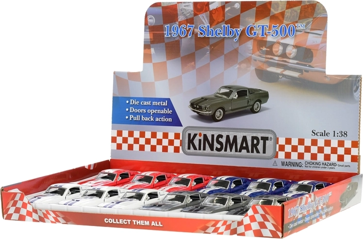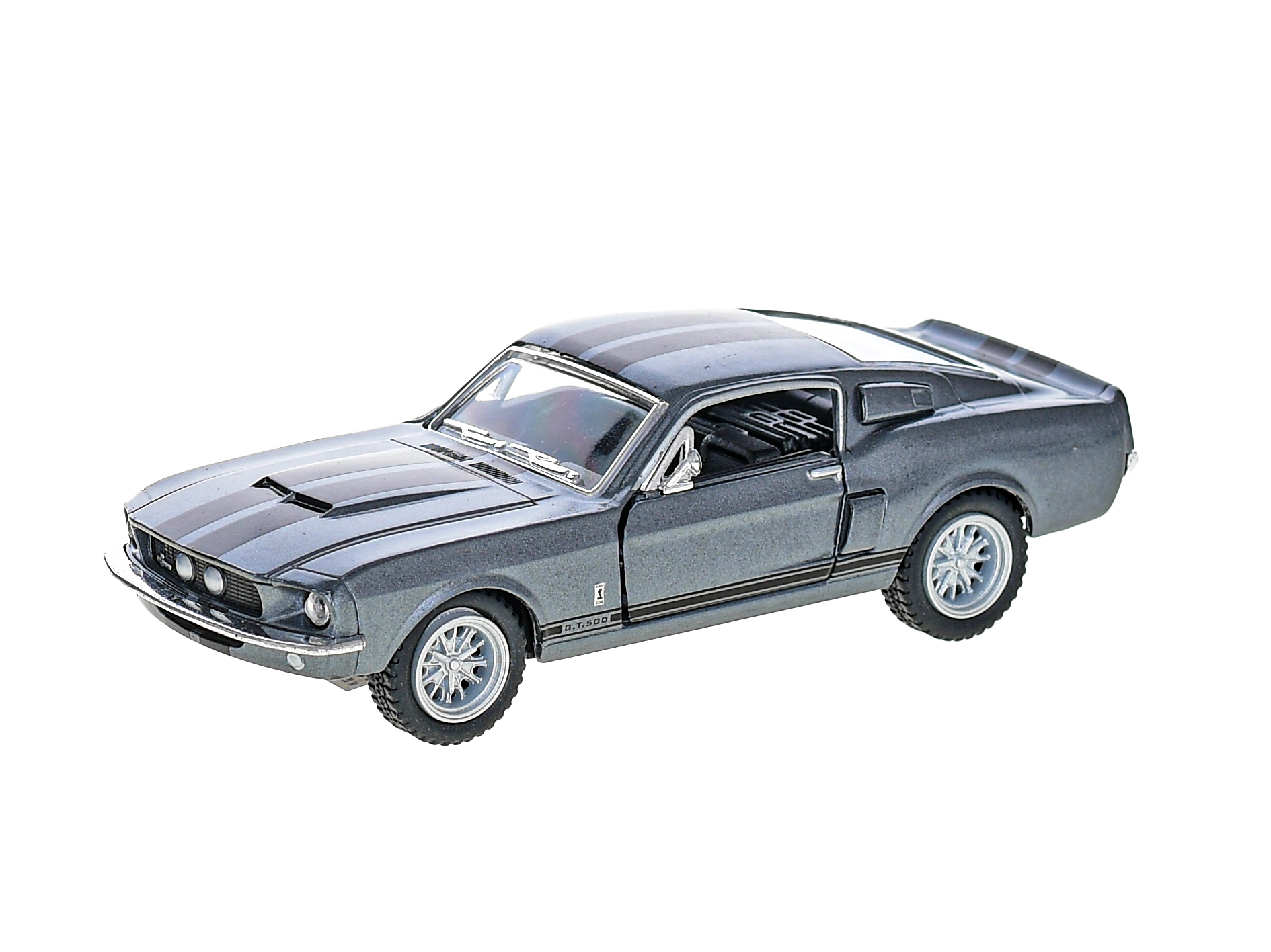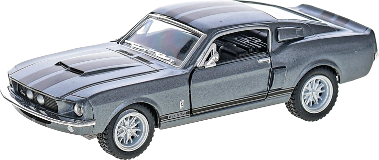 Ontdek de iconische Amerikaanse muscle car in een handzaam formaat. Dit metalen model van de FORD SHELBY GT500 uit 1967 op schaal 1:38 vangt trouw de sportieve lijnen en het karakter van de klassieker die harten van fans over de hele wereld veroverde. Dankzij de openende deuren kun je in het interieur kijken en het pull-back mechanisme zorgt voor een vlotte rit naar voren na eenvoudig terugtrekken.
