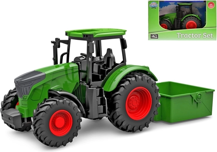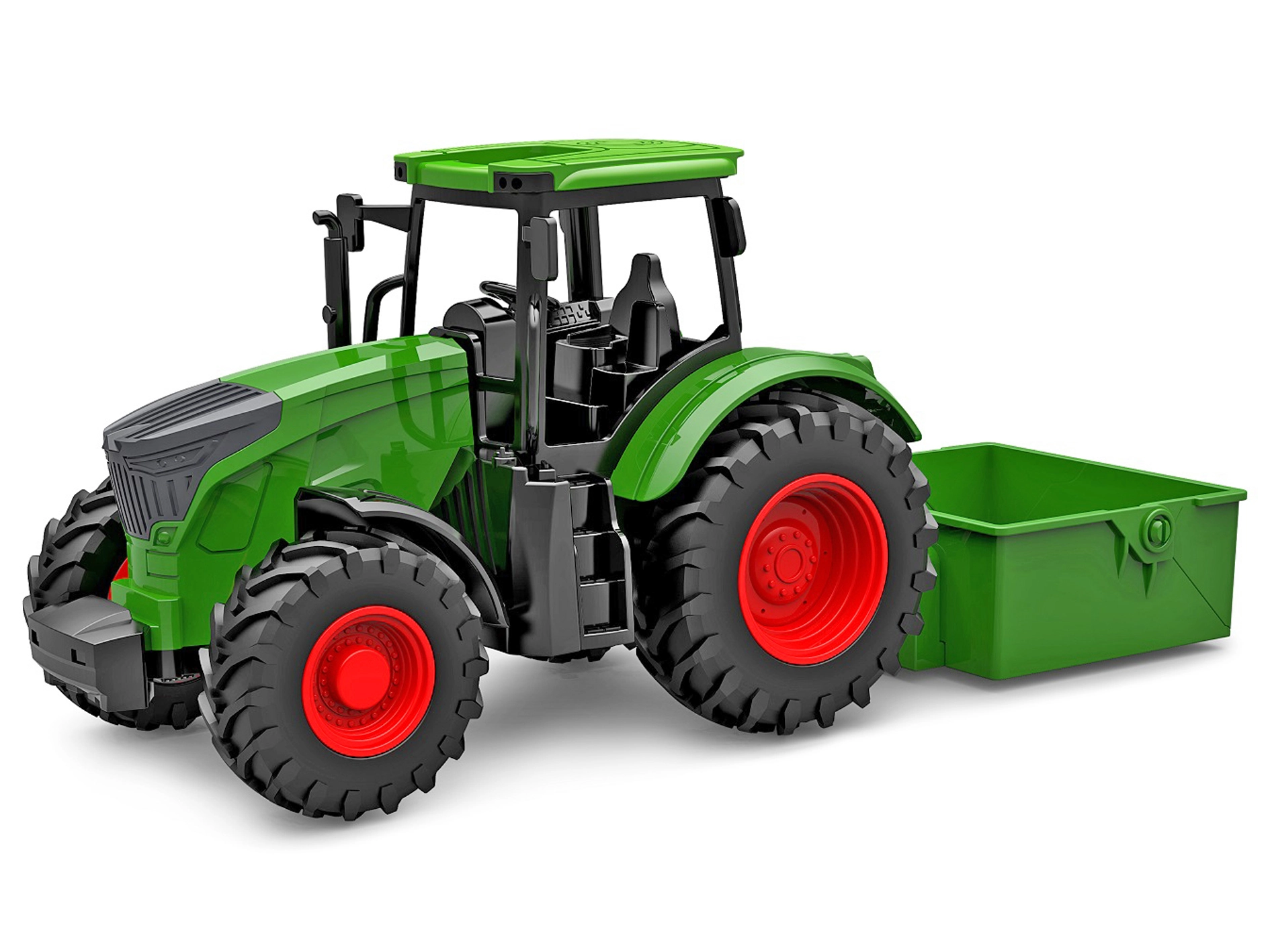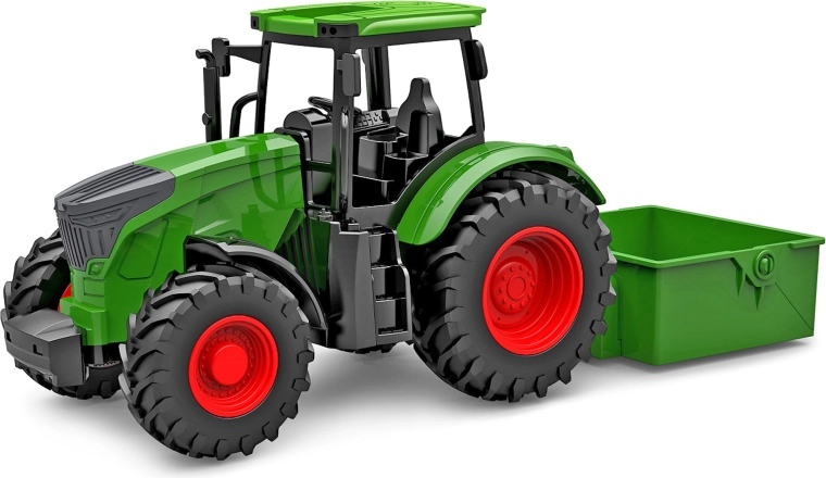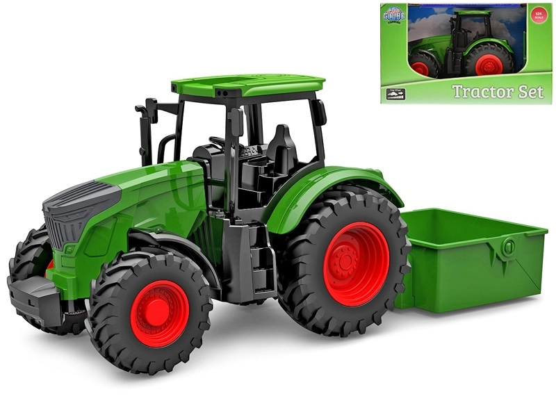 Realistisch modeltractor voor kleine boeren met vrijloop en een kiepaanhanger. Duurzame kunststof uitvoering, ideaal om op verschillende ondergronden mee te spelen en de fantasie te stimuleren. Praktische lengte van 27,5 cm voor eenvoudige hantering. Geschikt voor kinderen vanaf 3 jaar.