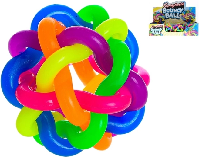 De kleurvolle stuiterbal met een uniek design van gevlochten “spaghetti” valt meteen op en brengt veel plezier in het spel. Zijn onverwachte stuiters stimuleren beweging, reactievermogen en oog-handcoördinatie, waardoor hij een uitstekende keuze is voor actieve kinderen.