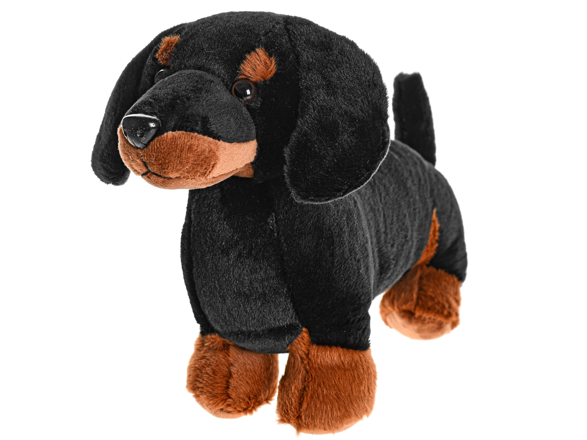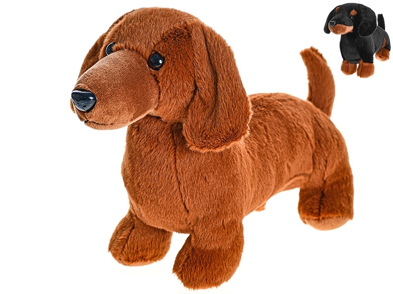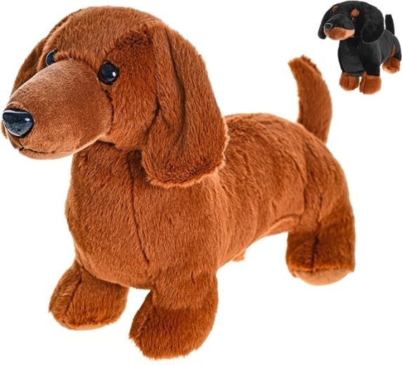 Een schattige pluchen teckel uit de Take Me Home-collectie is de ideale metgezel voor kinderen vanaf de geboorte. Hij biedt een lengte van 36 cm, een realistische staande houding en zacht, aaibaar materiaal voor comfortabel knuffelen en spelen. Verkrijgbaar in twee kleurvarianten – bruin en zwart.