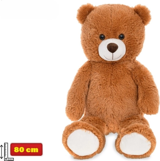 Een schattige pluchen beer van 80 cm hoog, zacht, knuffelig en klaar om te knuffelen. Zacht pluchen materiaal, een elegante strik en veilig vanaf de geboorte (0m+) maken hem tot de perfecte metgezel voor zowel kinderen als volwassenen en tevens een stijlvolle toevoeging aan de kinderkamer.