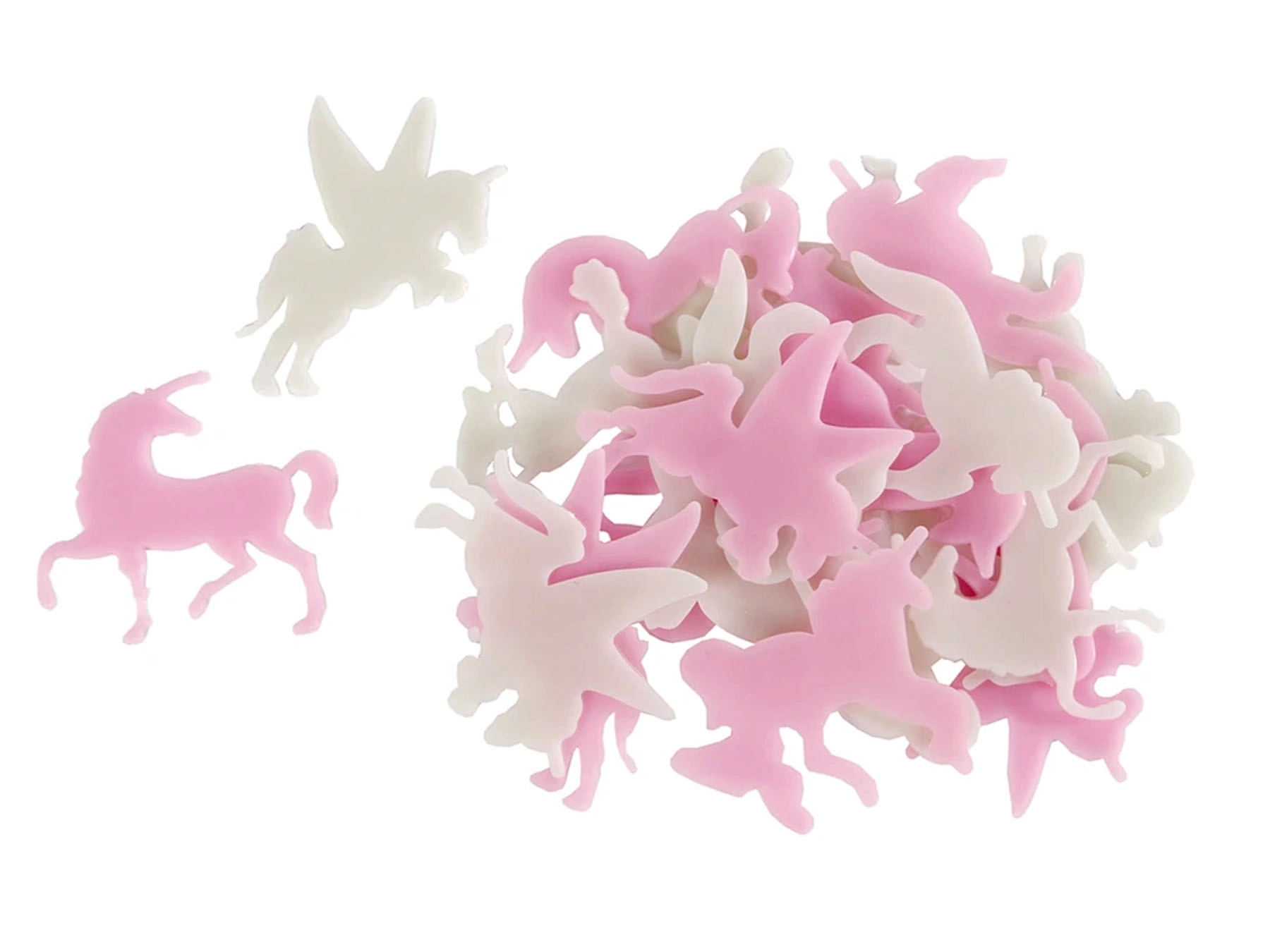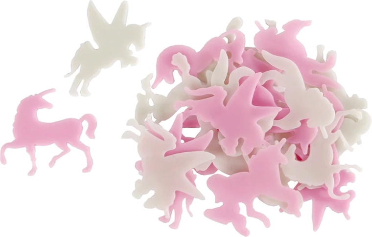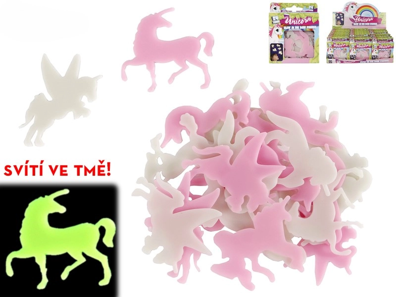 Creëer een magische sfeer in de kinderkamer met een set lichtgevende stickers in de vorm van eenhoorns. De set bevat 24 plastic stickers die overdag licht opnemen en in het donker zacht gloeien. Ze zijn licht, veilig en eenvoudig te verwijderen, zodat je ze zonder zorgen kunt verplaatsen. Dankzij het fosforescerende effect zorgen ze voor aangename lichteffecten voor een rustige nachtrust.