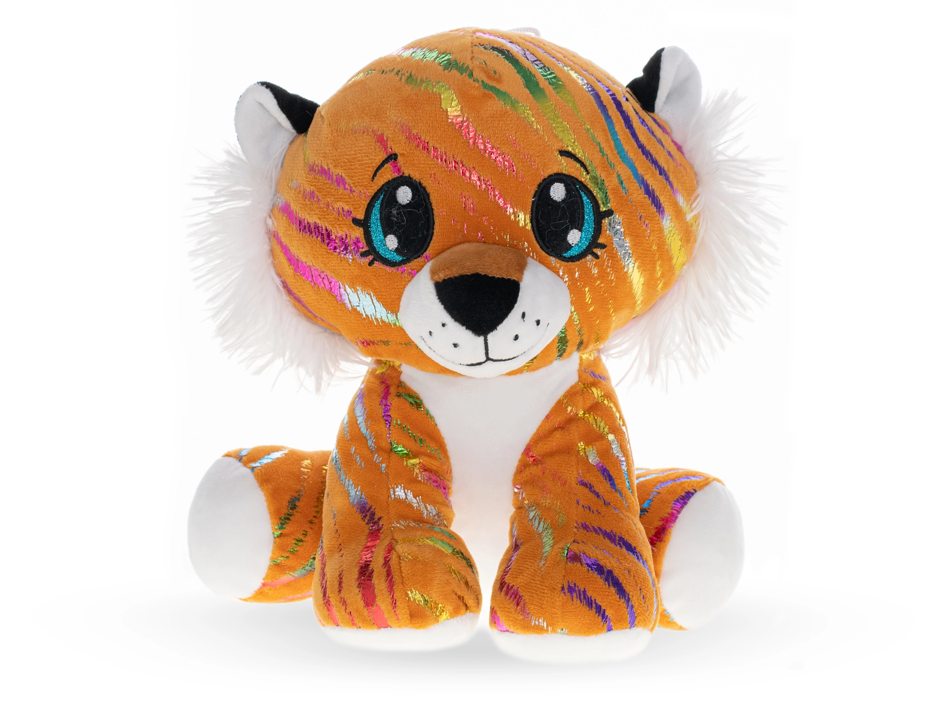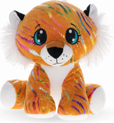 De pluchen tijger STAR SPARKLE is een vriendje waar kinderen bij de eerste aanraking verliefd op worden. Hij is gemaakt van zachte plush die aangenaam en veilig is, ook voor de allerkleinsten. De zittende uitvoering geeft het speeltje stabiliteit en een schattige uitstraling, terwijl de glinsterende regenboogdetails zijn magische design benadrukken.