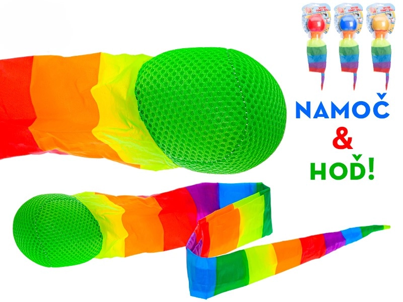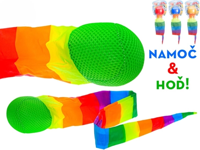 De waterbal met regenboogstreamer is een geweldige keuze voor plezier bij het zwembad, het meer of in de tuin. Na onderdompeling zuigt de bal water op en bij het gooien ontvouwt zich een kleurrijke streamer die kinderen motiveert om te rennen, te vangen en hun coördinatie te verbeteren. Dankzij de compacte afmetingen en het lage gewicht is hij gemakkelijk mee te nemen en op te bergen.