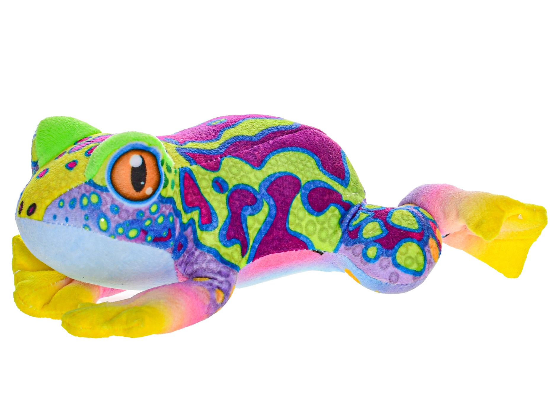 Bij indrukken activeert hij realistisch gekwaak, wat zintuiglijke waarneming stimuleert en de nieuwsgierigheid van kinderen prikkelt. De 3× AG13-batterijen zijn inbegrepen, zodat de knuffel direct na het uitpakken klaar is voor gebruik. Kies uit 4 vrolijke kleuren – rood, paars, geel of groen – en verras je kind met zijn of haar favoriete tint.