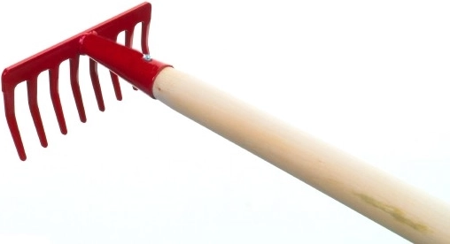 Deze kinderhark met een robuuste metalen kop en een prettig houten handvat is ideaal voor de eerste hulp in de tuin – van het harken van bladeren tot het egaliseren van de grond. Dankzij de compacte lengte van 80 cm ligt hij comfortabel in de hand en helpt hij bij het aanleren van correcte werkgewoonten.