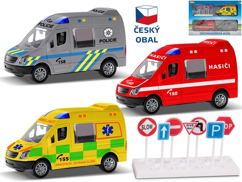- 3× auto (brandweer, ambulance, politie) + verkeersborden