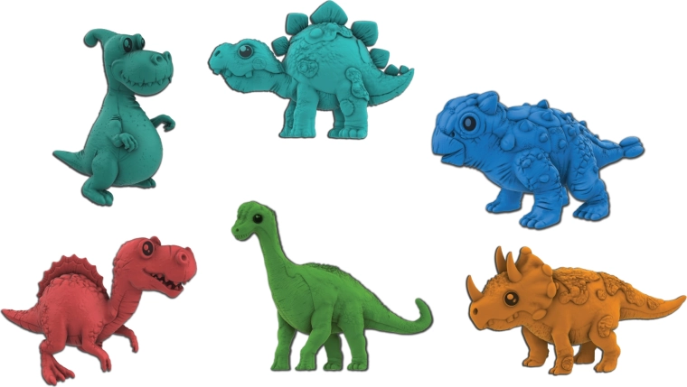 De eieren zijn verkrijgbaar in twee kleuren – rood en oranje – en bevatten willekeurig één van acht dinosaurussoorten: T‑Rex, Brontosaurus, Stegosaurus, Triceratops, Parasaurolophus, Ankylosaurus, Spinosaurus of Plesiosaurus. Een specifieke kleur en soort kan niet vooraf worden gekozen, wat bij elke aankoop een verrassingselement garandeert.