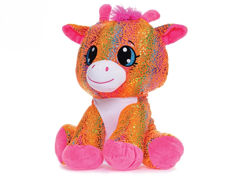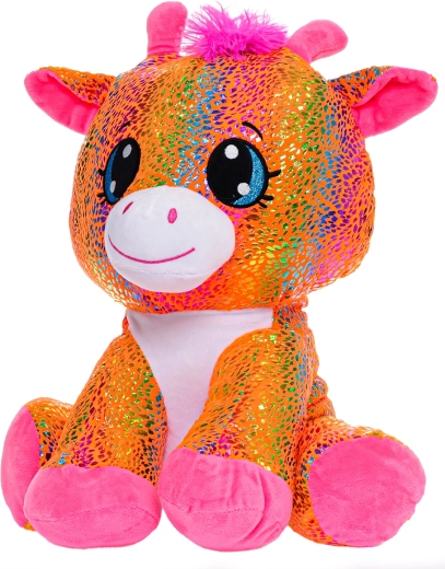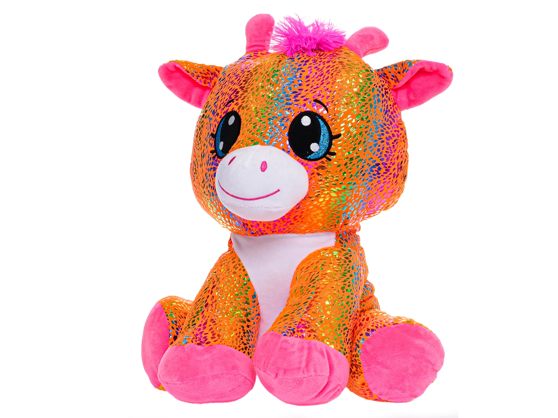 Deze pluchen giraf in een warme oranje kleur verovert de harten van kinderen met zijn lieve uitstraling en zachte oppervlak. Hij is ontworpen voor veilig spelen vanaf de geboorte en komt dankzij de zittende positie prachtig tot zijn recht op een plank of in het bedje. De hoogwaardige, zachte pluche stimuleert de zintuiglijke waarneming en werkt rustgevend bij het inslapen.