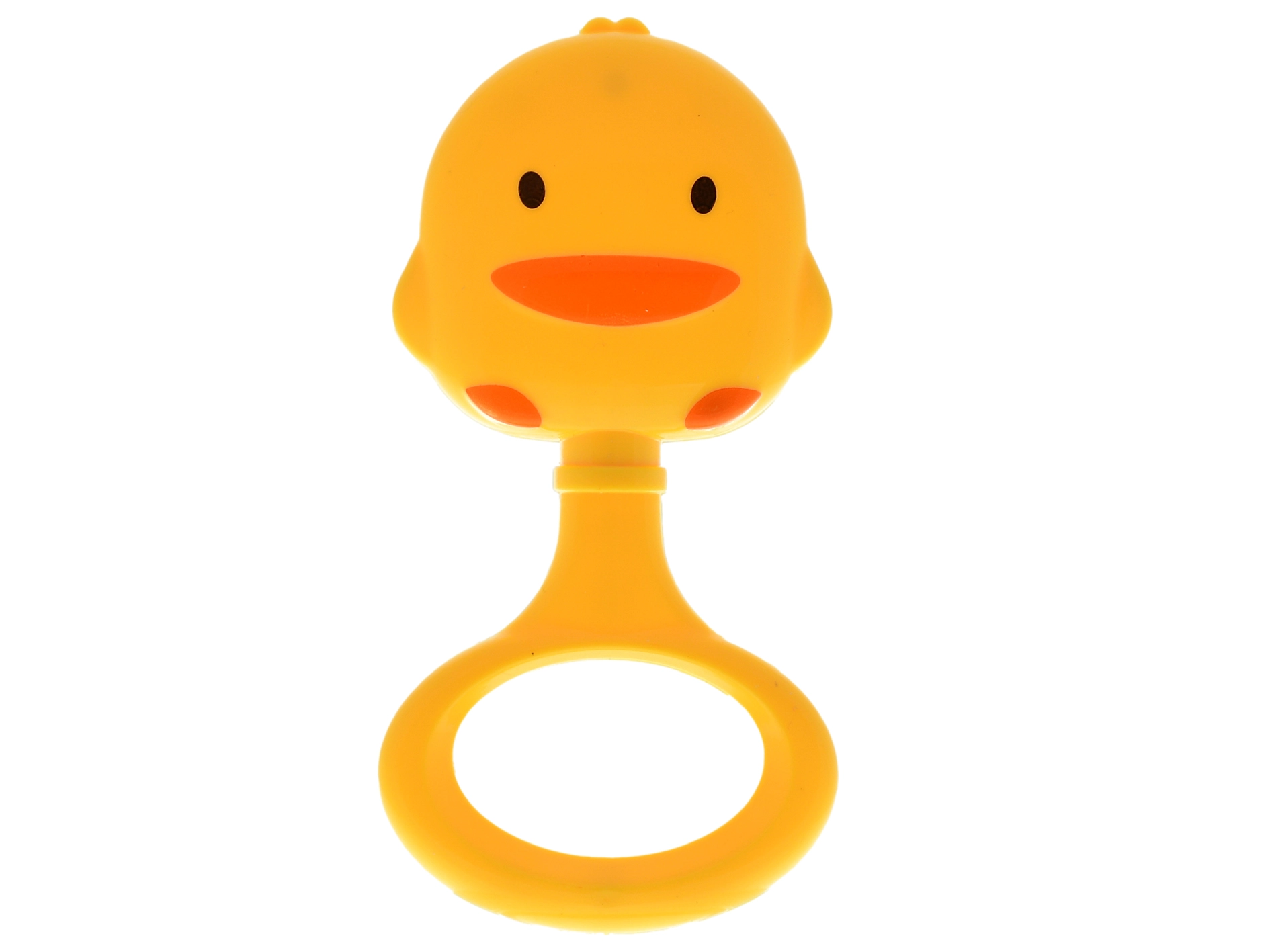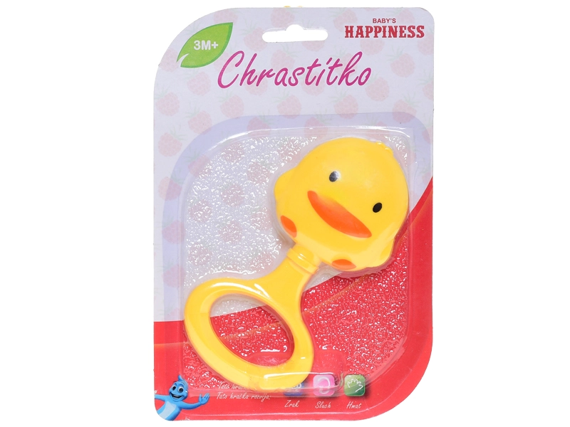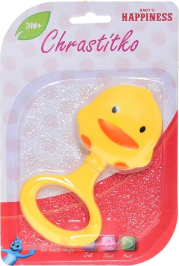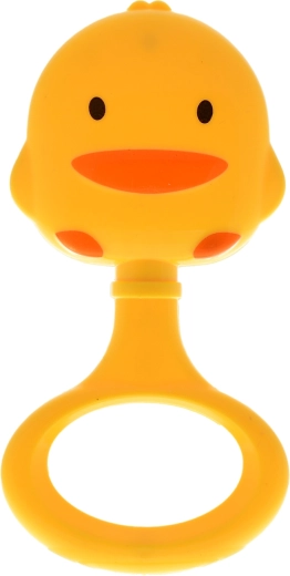 Schattige rammelaar in de vorm van een eendje van 13 cm, ideaal als eerste speeltje voor kinderen vanaf 3 maanden. Dankzij de levendige kleuren, het aantrekkelijke ontwerp en de lichte constructie trekt het gemakkelijk de aandacht, stimuleert het de zintuiglijke ontwikkeling en bevordert het de fijne motoriek bij het grijpen.