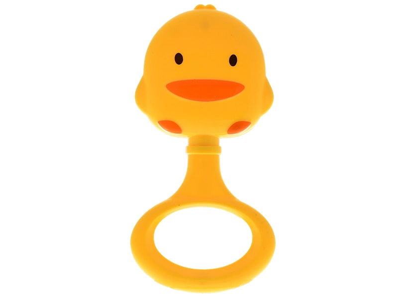 Op zoek naar een veilige en leuke speelgoedoptie voor de allerkleinsten? De eendvormige rammelaar is licht, ergonomisch gevormd en past perfect in kleine handjes. Heldere kleuren en een aangenaam rammelend geluid stimuleren zicht, gehoor en tast, wat bijdraagt aan de natuurlijke ontwikkeling van de zintuigen van je baby.