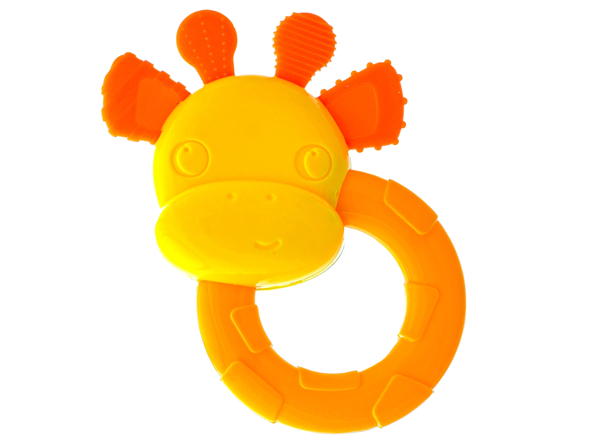 Een schattige rammelaar en bijtring in de vorm van een giraf maakt baby’s vanaf 3 maanden blij. Het combineert zintuiglijke stimulatie met verlichting bij doorkomende tandjes. Dankzij het lichte en gemakkelijk vast te houden design ondersteunt het de fijne motoriek en coördinatie. Vrolijke kleuren trekken de aandacht en veilige, gemakkelijk afwasbare materialen zorgen voor hygiënisch gebruik, thuis en onderweg.