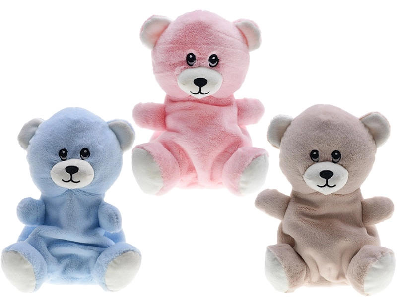 Je kunt kiezen uit drie populaire kleuren – beige, roze en blauw. Het beertje is gemaakt van zachte pluche die prettig aanvoelt en bovendien eenvoudig te onderhouden is voor de dagelijkse hygiëne.