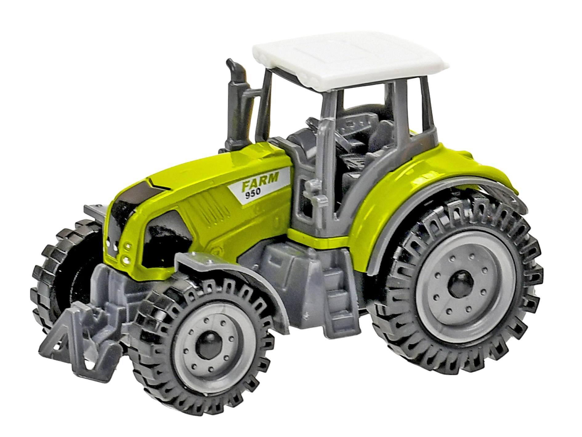 Compacte metalen tractor van 9,5 cm die kleine fans van landbouwmachines zal verrassen. Dankzij de vrijloop rijdt hij soepel over verschillende ondergronden, is hij duurzaam, heeft hij een realistische afwerking en is hij verkrijgbaar in drie kleuren – oranje, rood en groen.