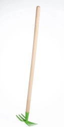 De dubbelzijdige kop maakt hakken, losmaken en wieden van perken mogelijk, terwijl de compacte afmetingen veilig gebruik vergemakkelijken. Ideaal om de basis van het tuinieren te leren en de motoriek te ontwikkelen.