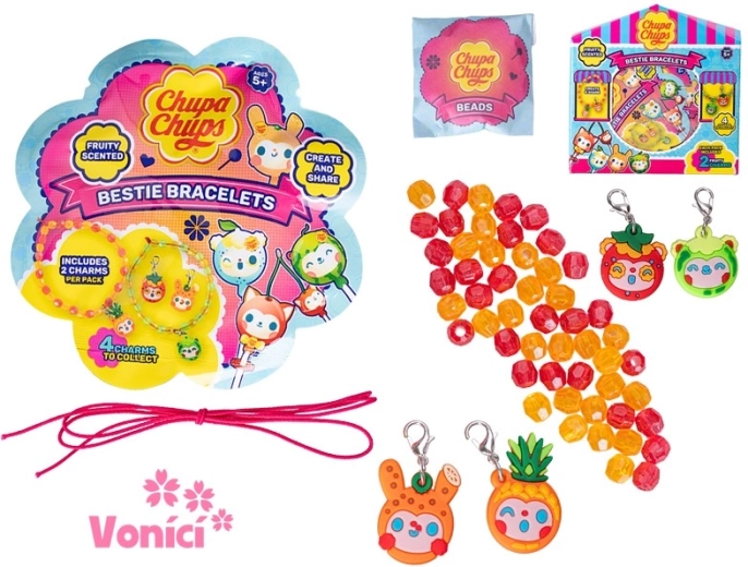 Ontdek de leuke en creatieve geurende CHUPA CHUPS vriendschapsarmbanden voor kinderen vanaf 5 jaar. In de verpakking vind je 2 lichte kunststof armbanden met hangertjes, die kinderen naar eigen fantasie kunnen samenstellen. Elke armband heeft een aangename geur, waardoor het niet alleen een stijlvol accessoire is, maar ook een zintuiglijke ervaring. Geweldig voor de ontwikkeling van creativiteit en fijne motoriek en ideaal om te delen met een vriend(in) of broer/zus.