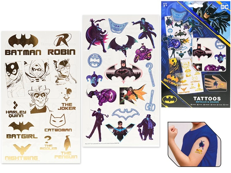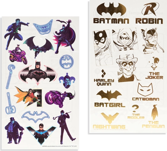 Prikkel de verbeelding van kinderen met tijdelijke tatoeages geïnspireerd op de wereld van DC. Twee vellen kleurrijke stripmotieven zorgen voor uren speelplezier en eenvoudig gebruik zonder rommel – je hebt alleen water en een paar seconden aandrukken nodig.