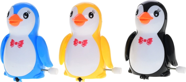 Schattige opwindpinguïn van 8,5 cm die na het opwinden met een sleuteltje vanzelf beweegt en kinderen veel plezier biedt. Dankzij de compacte afmetingen is hij makkelijk mee te nemen, is gemaakt van kwaliteitskunststof en heeft geen batterijen nodig. Stimuleert de fijne motoriek, zelfstandig spel en is verkrijgbaar in drie kleuren – zwart, blauw en geel.