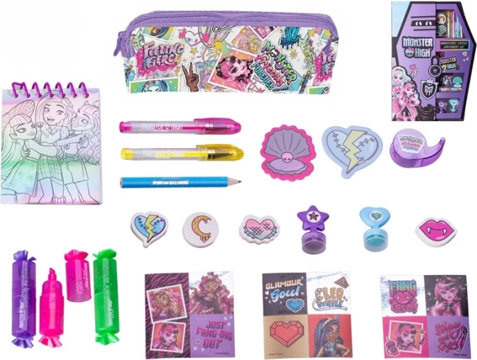 Stijlvol etui met MONSTER HIGH-motieven dat elke fan zal verblijden. Bevat kleurpotloden, viltstiften, potloden en stickers met favoriete personages zoals Draculaura, Frankie Stein en Clawdeen Wolf. Het compacte en gemakkelijk draagbare etui is ideaal voor school, thuis en onderweg en stimuleert de creativiteit en verbeelding van kinderen vanaf 8 jaar.