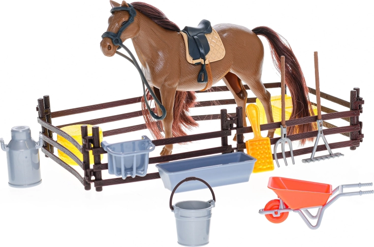 De set stimuleert creativiteit, rollenspel en de ontwikkeling van de fijne motoriek. Met de meegeleverde accessoires is het eenvoudig om eigen scènes uit de stal of op de boerderij te creëren. De praktische doosverpakking maakt opbergen en opruimen gemakkelijk.