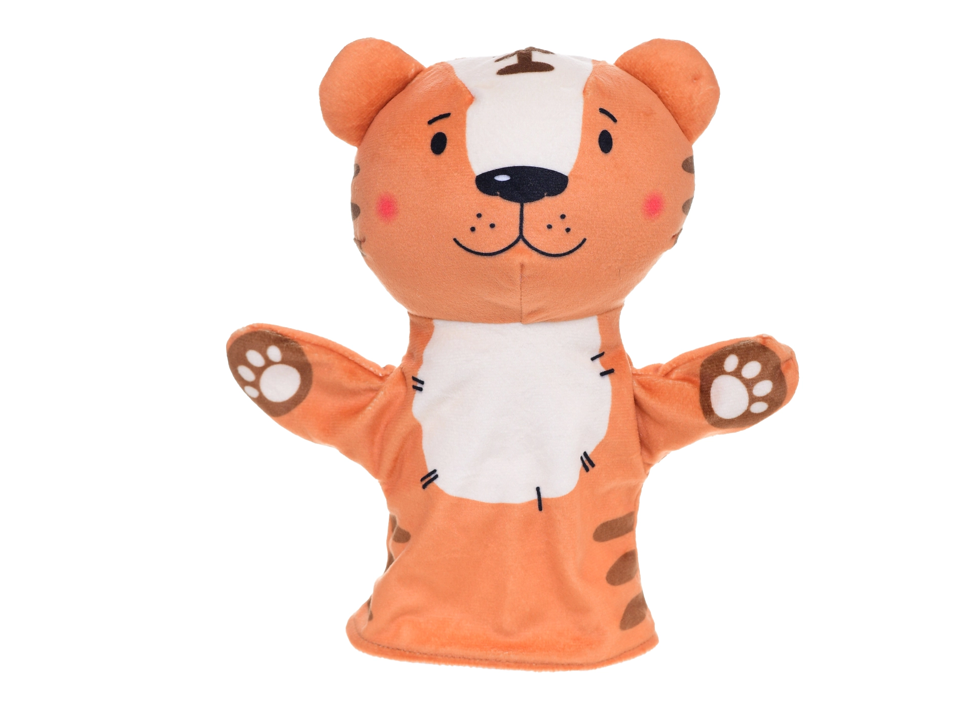 Schattige pluchen handpop van 25 cm, ideaal voor baby’s en oudere kinderen. Gemaakt van zacht, knuffelig en veilig materiaal, vriendelijk voor de gevoelige kinderhuid. Dankzij het gemakkelijk over de hand schuiven stimuleert het interactief spel, de ontwikkeling van fantasie, communicatievaardigheden en emotionele expressie. Verkrijgbaar in zes populaire diervarianten.