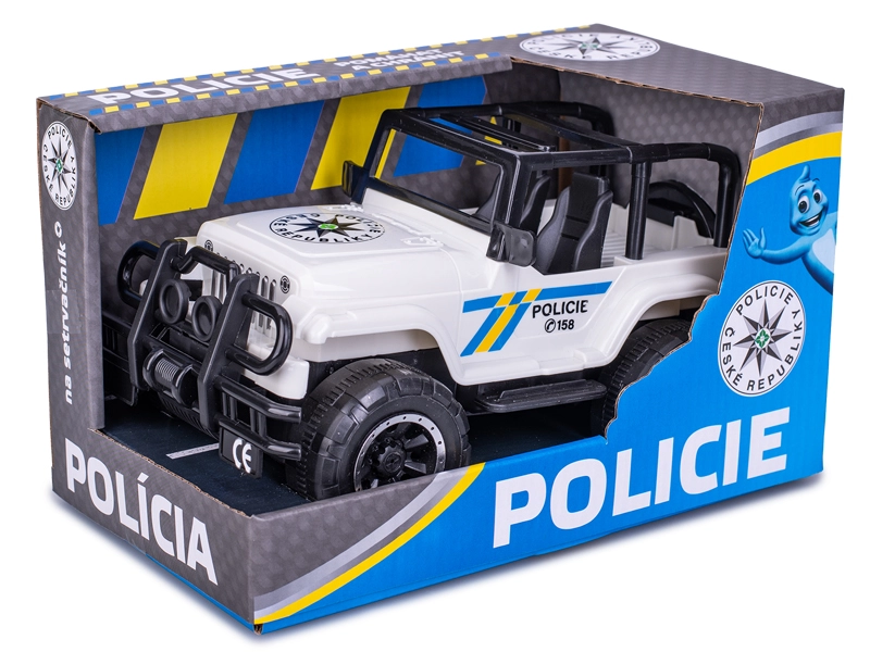 Actieve politiejeep met vliegwielaandrijving van 22,5 cm maakt kleine helden van reddingsmissies enthousiast. Biedt een realistisch design geïnspireerd op de Tsjechische politie, een robuuste kunststof uitvoering en eenvoudige bediening voor de ontwikkeling van de fijne motoriek. Ideaal cadeau in een praktische verpakking.