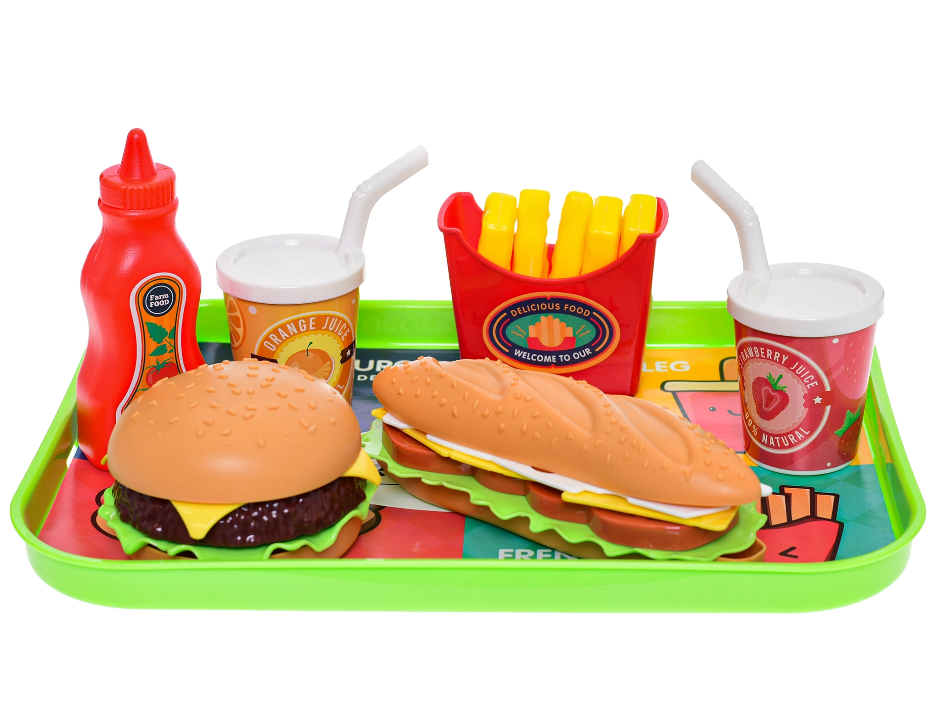 Ontdek de magie van koken met deze kleurrijke fastfoodset. Kinderen kunnen favoriete gerechten bereiden en serveren aan vriendjes en familie, en zo rollenspel, communicatie en fantasie oefenen. De realistische afwerking van de items zorgt voor een authentieke spelbeleving.