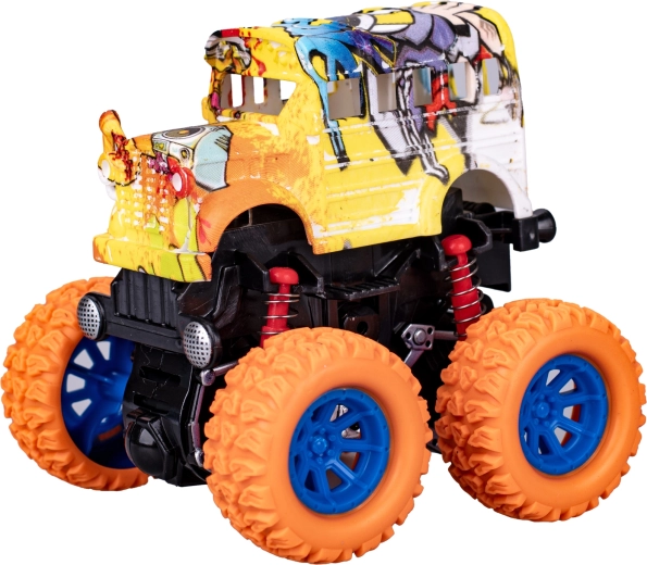 De Crazy Truck bus is een compact speelgoed van 9 cm lang, dat dankzij de vliegwielaandrijving gemakkelijk vooruit schiet – gewoon een duwtje geven. Grote wielen en duurzaam kunststof zorgen voor stabiel rijden en een lange levensduur, zelfs bij intensief spelen.