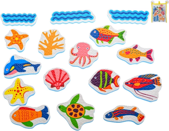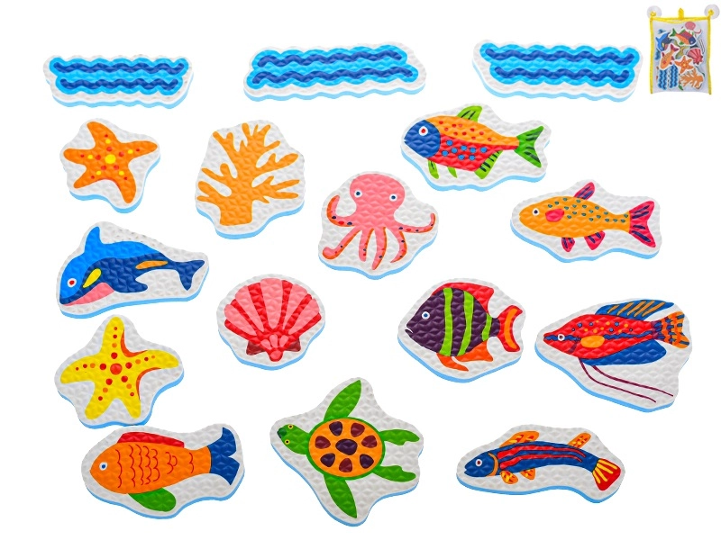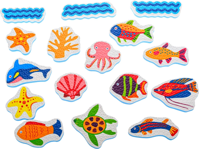 De foamstickers voor in bad met zeedieren veranderen elk bad in een speels avontuur. Kinderen kunnen hun eigen onderwaterverhalen creëren, kleuren en vormen leren en tegelijk de fijne motoriek trainen. De lichte foamfiguren hechten na het natmaken aan gladde oppervlakken zoals tegels of de badwand en kunnen na het spelen eenvoudig in het meegeleverde net worden opgeborgen.