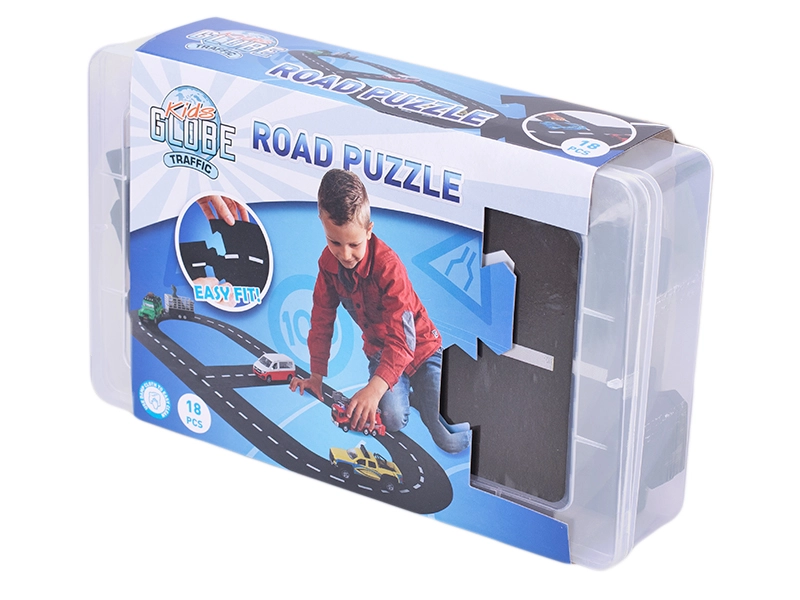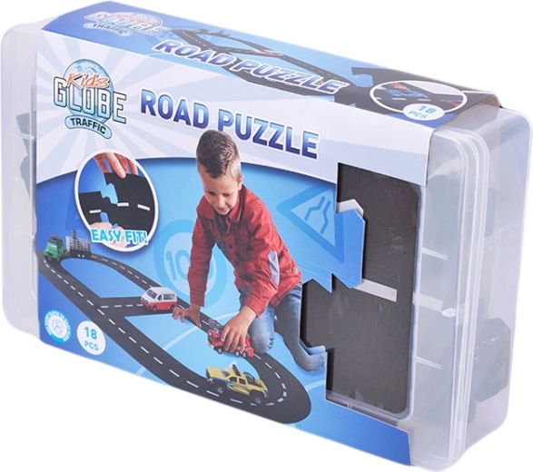 Ontdek de leuke en creatieve Kids Globe Traffic racebaan, die creatief bouwen combineert met spannend rijden. Met 18 puzzelstukken bouwen kinderen eenvoudig hun eigen wegroutes met een totale lengte van 307,5 cm. Het flexibele rubberen materiaal maakt het mogelijk om verschillende bochten en combinaties te creëren en stimuleert motoriek, coördinatie en fantasie. Ideaal om binnen en buiten mee te spelen; autootjes zijn niet inbegrepen.