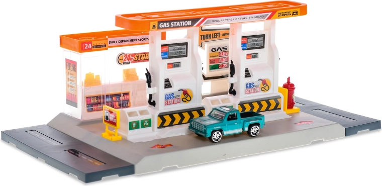 - Realistische elementen van het tankstation en een metalen auto voor nog meer speelplezier.