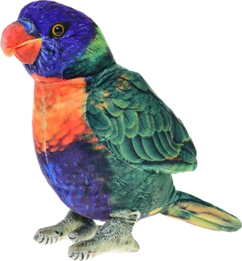 Schattige pluchen lori-papegaai van 23 cm hoog, een getrouwe replica van een exotische vogel met een bonte kleurstelling en een realistische uitstraling. Gemaakt van zachte, knuffelige pluche, ideaal om mee te knuffelen en te spelen. Dankzij de staande houding ook geschikt als stijlvolle decoratie voor de kinderkamer. Geschikt vanaf de geboorte, gemaakt van kwalitatieve en veilige materialen.