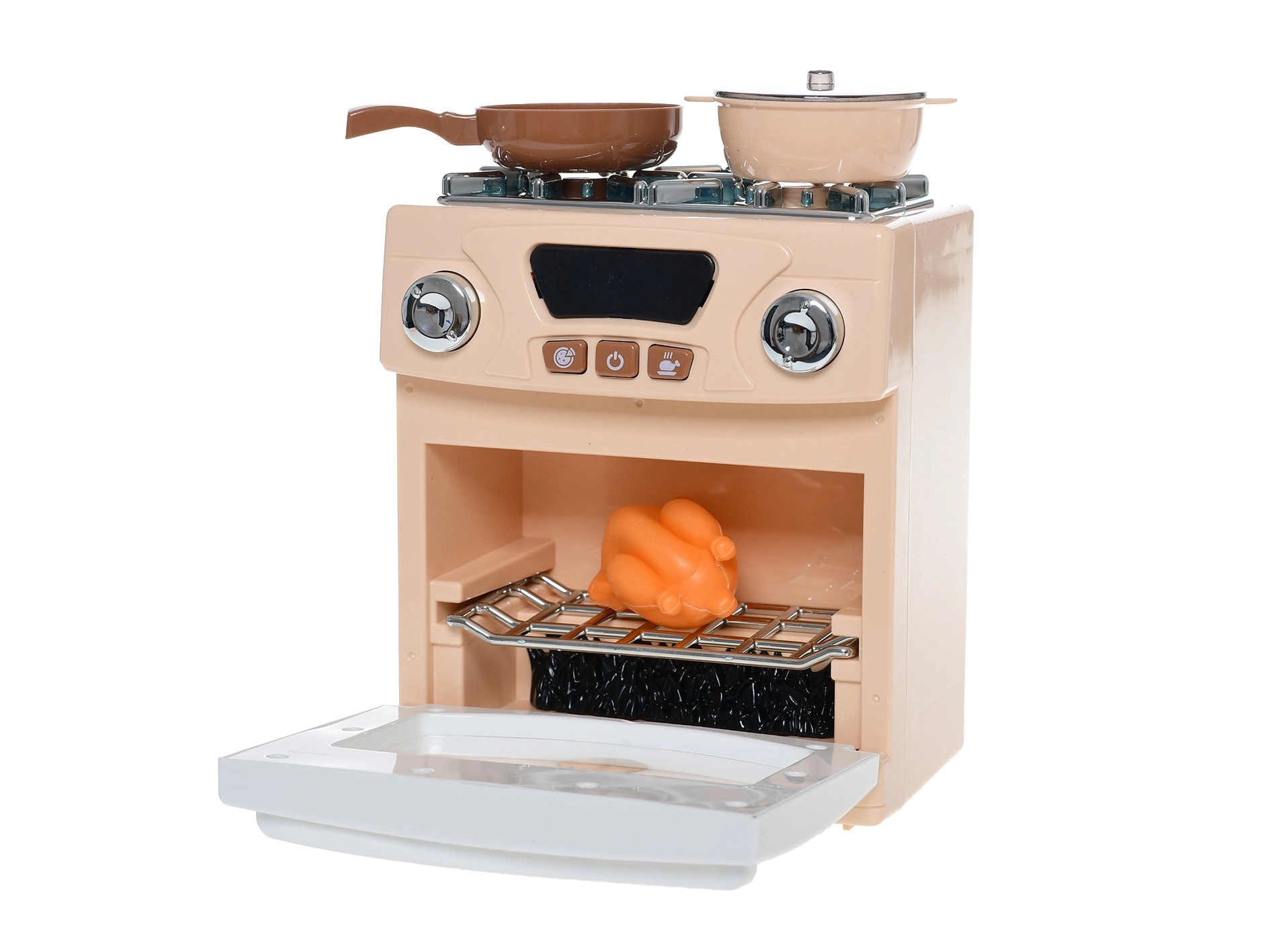 Er is ook een set praktische kookaccessoires inbegrepen, zodat kleine koks hun “specialiteiten” meteen na het uitpakken kunnen bereiden. Dankzij het compacte formaat van 18 × 15 × 9 cm past het fornuis gemakkelijk in de kinderkamer of speelhoek en is het eenvoudig te verplaatsen.