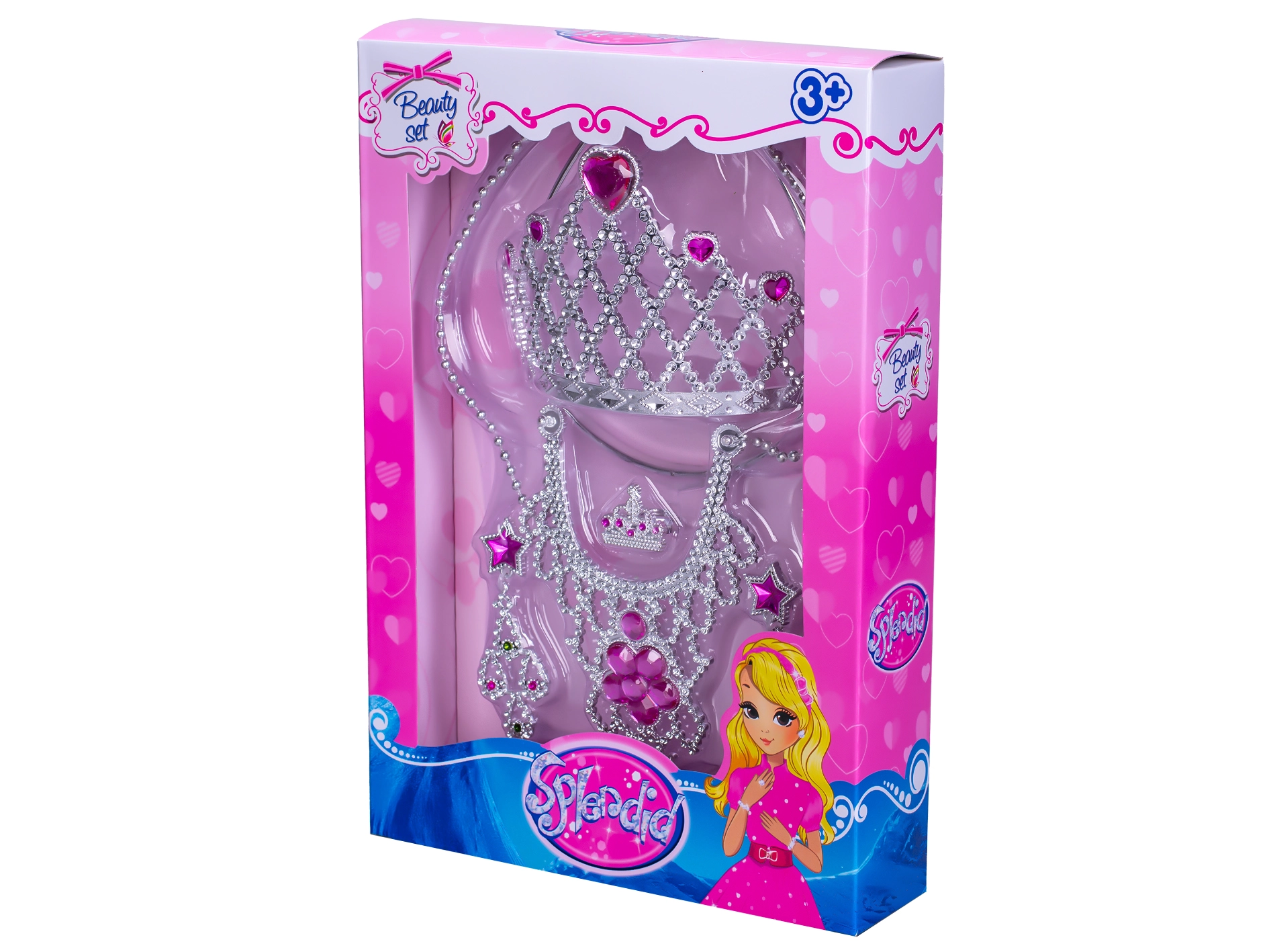 Deze kinderbeautyset met kroon is het perfecte cadeau voor kleine dametjes die houden van de wereld van sprookjes en fantasie. Dankzij de lichte en veilige materialen is spelen comfortabel en zorgeloos, terwijl de glanzende accessoires hun creativiteit en verbeelding stimuleren.