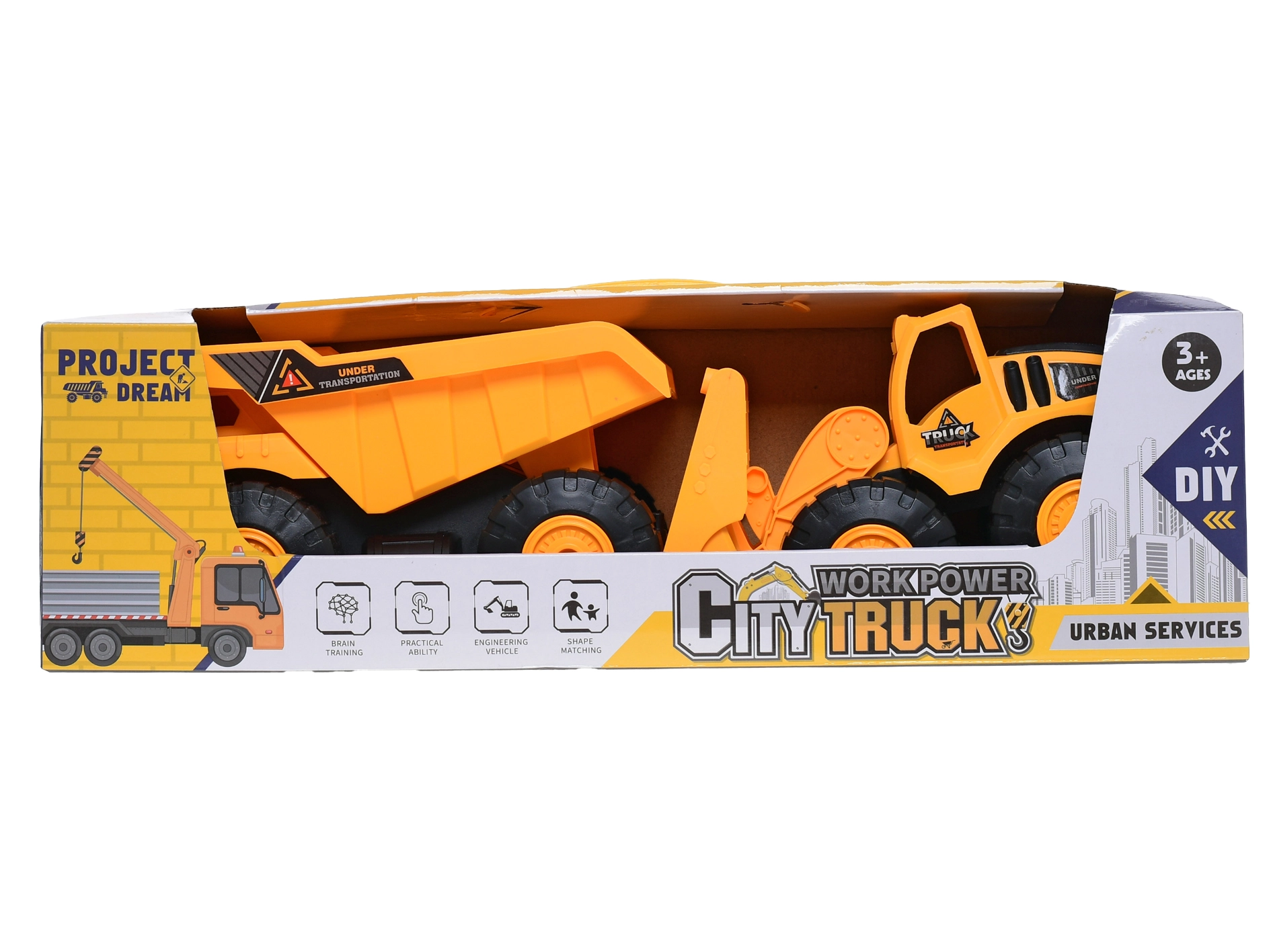 De voertuigen zijn geschikt voor spel binnen en buiten en hun afmetingen passen perfect in kinderhanden. Het realistische uiterlijk inspireert tot het aanleggen van wegen, het verplaatsen van materiaal of het bedenken van eigen verhalen.