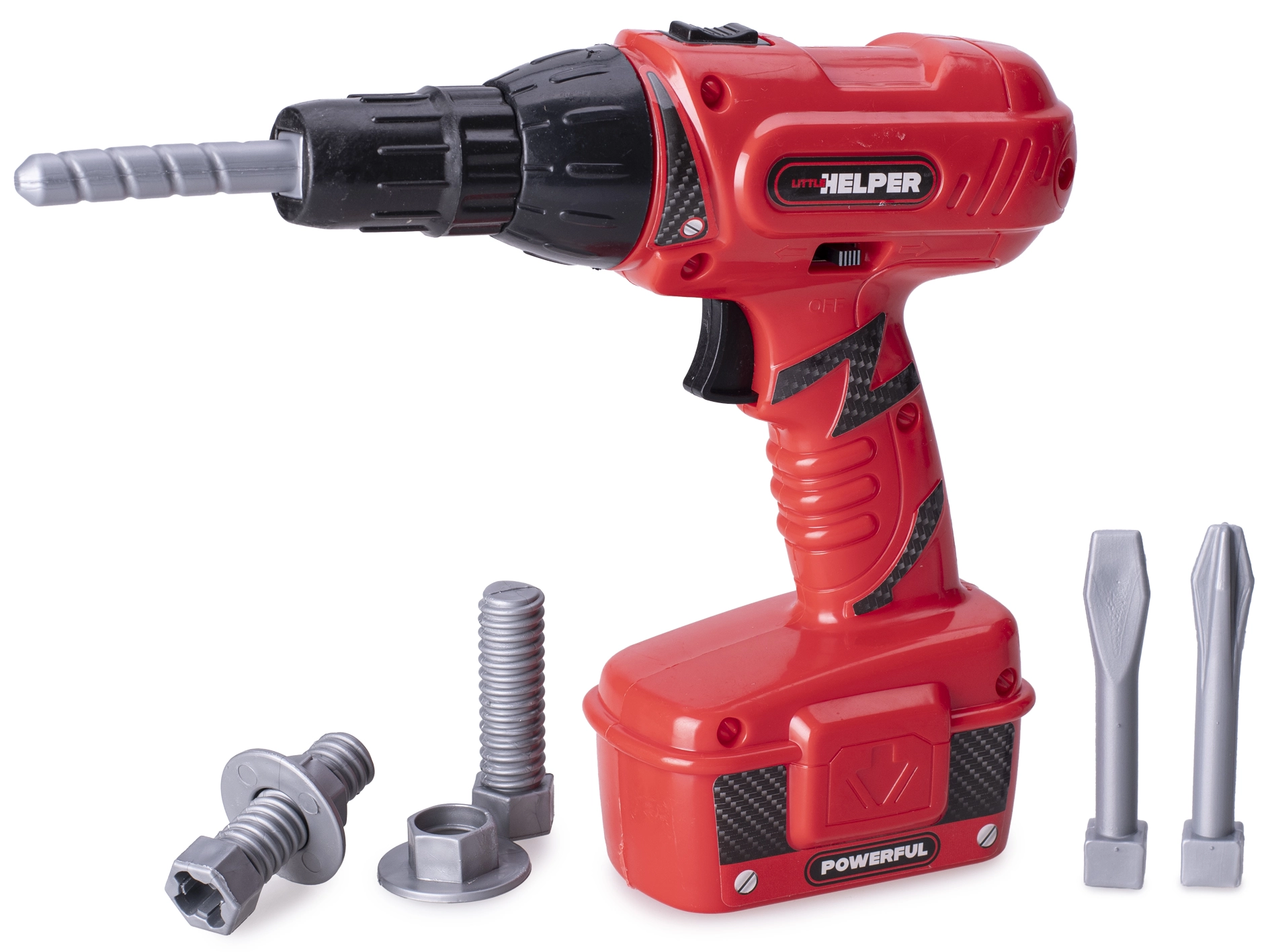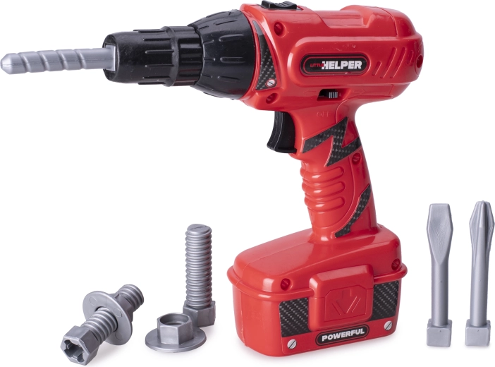 Een leuke en veilige kinderboormachine van 18 cm zal kleine doe-het-zelvers blij maken met realistische geluiden en de mogelijkheid tot tweerichtingsrotatie. De lichte kunststof constructie ligt goed in kinderhanden en stimuleert fijne motoriek en oog-handcoördinatie. Dankzij de verwisselbare boortjes en voeding op 2× AA-batterijen genieten kinderen van bewegingsvrijheid en veel creatieve speeltijd.