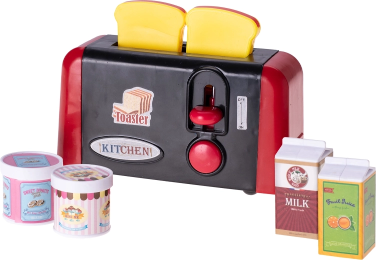 Een leuke kinder-opwindbroodrooster met accessoires voor realistisch rollenspel in de keuken. Dankzij het opwindmechanisme “bakken” kinderen eenvoudig toast, terwijl ze hun fijne motoriek en creativiteit ontwikkelen. Licht en veilig ontwerp van hoogwaardig kunststof, compacte afmetingen en rijke accessoires voor nog meer speelplezier.