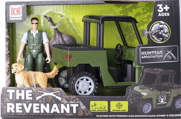 De Revenant terreinwagen met jagerset brengt realistische natuurscènes tot leven. Het gedetailleerde voertuig, de jagersfiguur en de dieren – een wilde gans en een jachthond – stimuleren rollenspel, de ontwikkeling van de fijne motoriek en de verbeeldingskracht.