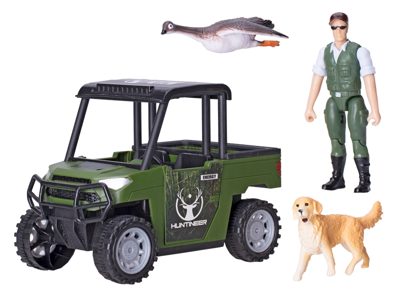 - Geweldige set voor actievol spel – auto, jager, hond en gans in één verpakking.