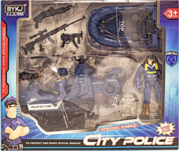 Kinderpolitieset voor kleine helden met een helikopter en boot voor actievolle missies op land en op het water. Inclusief politiefiguren en praktische accessoires die creatief spel stimuleren. De hoogwaardige kunststof uitvoering garandeert duurzaamheid, de compacte afmetingen maken meenemen eenvoudig en het doosje houdt alle onderdelen netjes bij elkaar.