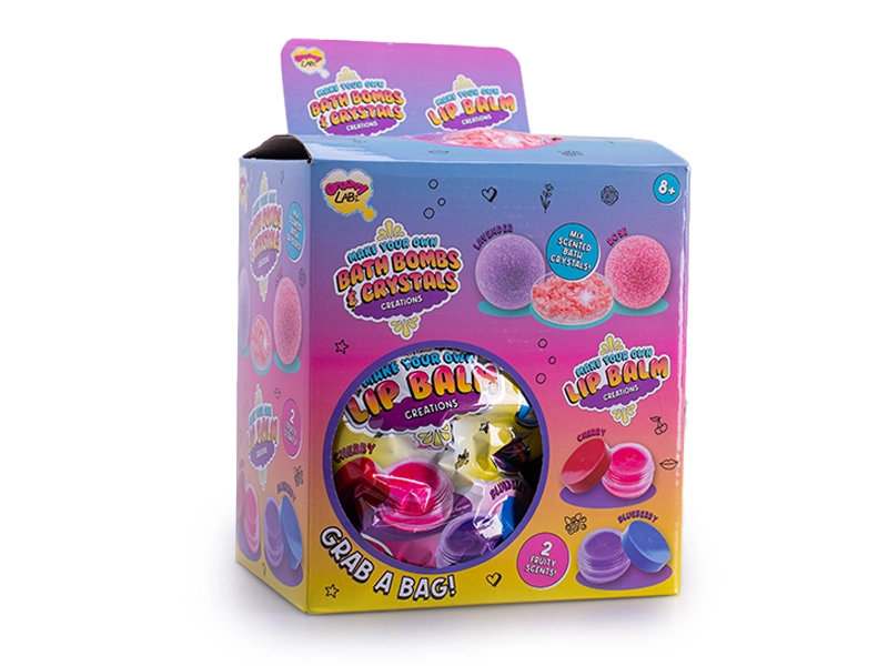 Ontdek een leuke creatieve set voor kinderen vanaf 8 jaar, waarmee ze hun eigen cosmetica kunnen maken – een lippenbalsem of een bruisende badbom met een aangename fruitige geur. De set bevat alles wat nodig is voor eenvoudige productie, stimuleert creativiteit en fijne motoriek en verandert lichaamsverzorging in een geurige ervaring.