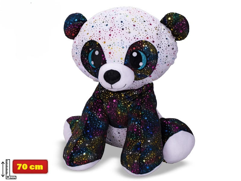 De schattige pluchen panda uit de collectie Plush Friends Star Sparkle is een superzachte metgezel voor kinderen al vanaf de geboorte. Dankzij de hoogte van 70 cm en het zittende design geeft hij een veilige knuffel, is hij een stijlvolle decoratie voor de kinderkamer en verrukt hij met zacht pluche materiaal en sprankelende details.