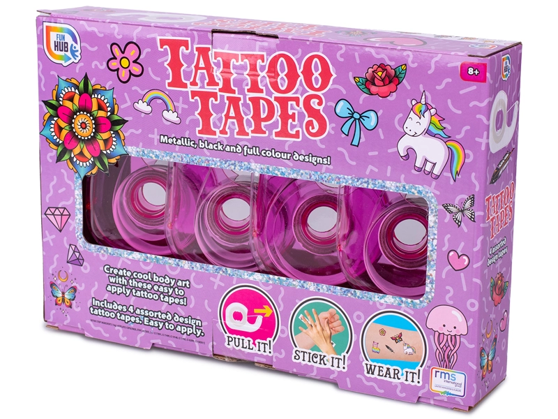 Ontdek de leuke en creatieve plaktapes met tatoeage‑motief voor kinderen vanaf 8 jaar. Elke set bevat 4 zelfklevende tapes met verschillende patronen om schoolspullen, cadeaus en dagboeken origineel te versieren. De crêpepapieren tapes zijn licht doorschijnend, makkelijk te verwijderen en laten geen lijmresten achter. Het praktische doosje met scherpe tandjes zorgt voor makkelijk afscheuren en comfortabel gebruik op elk moment.